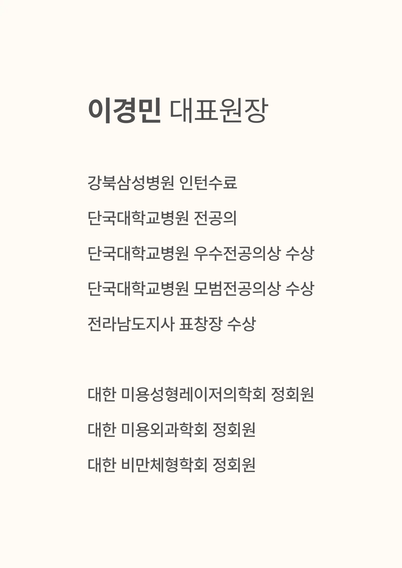 공장형시술과 빠른진료에 지쳐 진정한 ‘나만의 공간’을 찾는 분들에게, 편안하면서도 진심 어린 상담과 결과로 보답하겠습니다.
